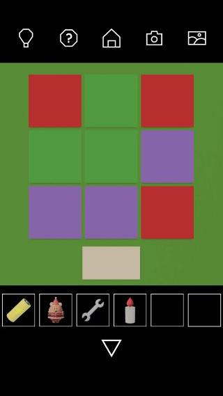右の棚の上を調べて、色の配置を確認。