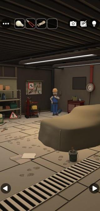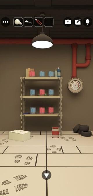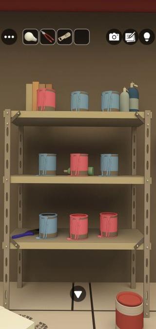 棚のペンキ缶の色の配置を確認。