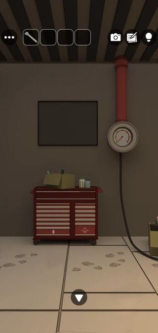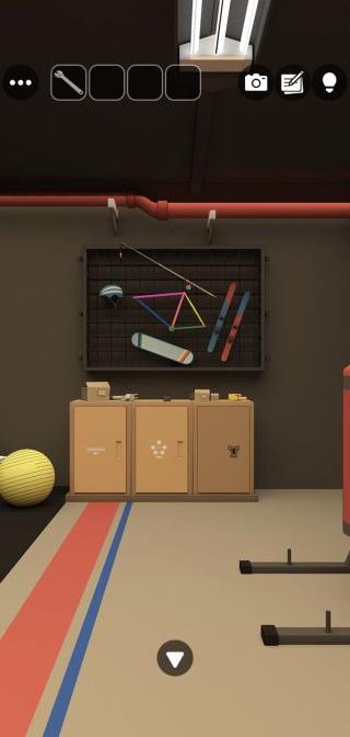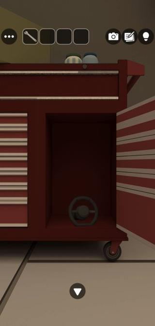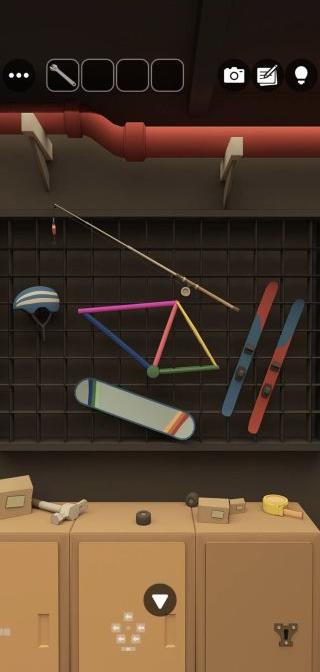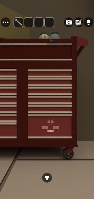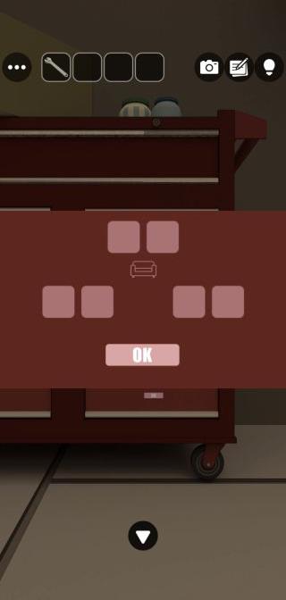 右奥の壁を拡大して、中央の5色の線で先ほどのクッションの色の組み合わせを当てはめて、その先にある物を確認。