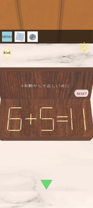 『6+5=11』となるように2本のマッチ棒を動かす。