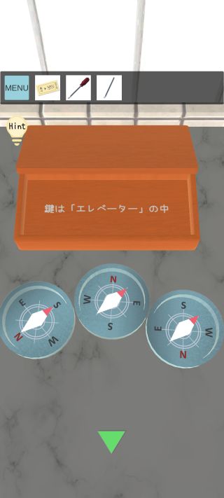 『鍵はエレベーターの中』を確認して、下に降りて左に移動。