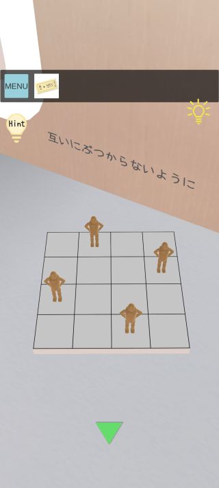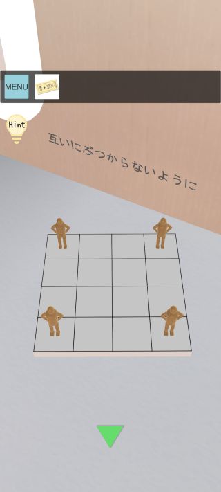 右の人形を拡大して、タテ・ヨコ・ナナメにぶつからない位置に合わせる。