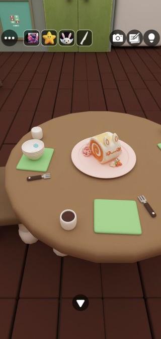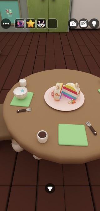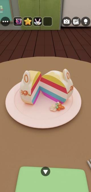 ケーキを「ナイフ」で切って、断面の色『黄赤白青紫』を確認。