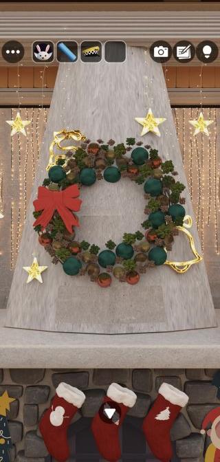 クリスマスリースを拡大して、『リボン=左』を確認。