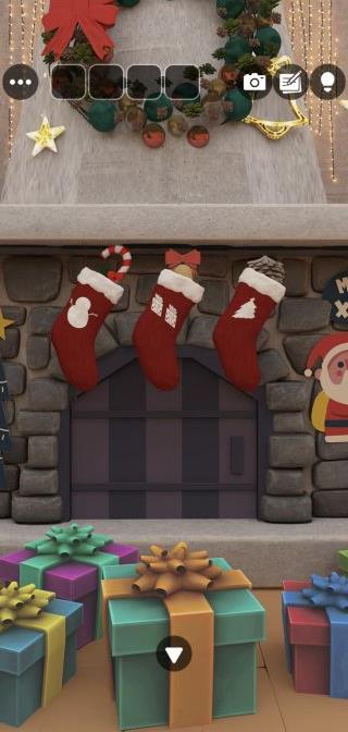 くつ下に左から「キャンディケイン」「ベル」「松ぼっくり」を入れる。