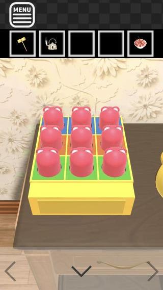 左上の装置を拡大して、「ピコピコハンマー」で『青=下上下、オレンジ=下下上、緑=上下上』に合わせる。