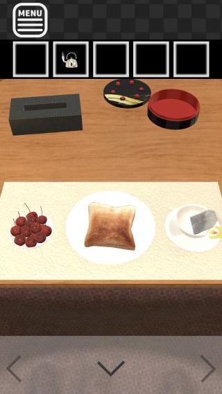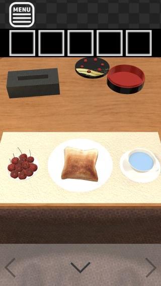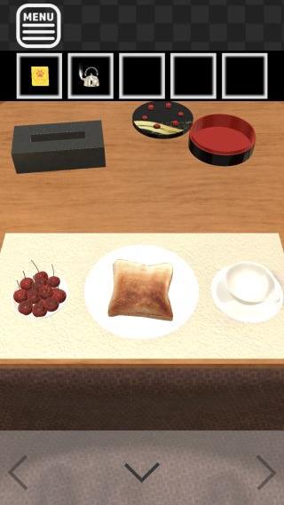 左に「チェリー」、中央の皿に「トースト」を置く。