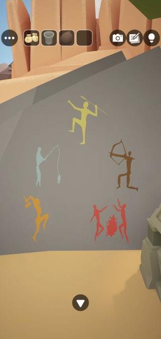 右奥の石の壁画を拡大して、先ほどの足跡の数の順で色を確認。