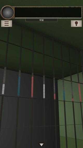 左の鉄格子を拡大して、色の長さの順で『赤赤白青白青赤赤』を確認。