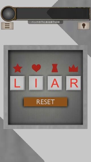 先ほどの壁のアルファベットをヒントに『LIAR』に合わせて開ける。