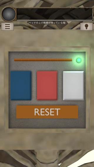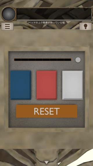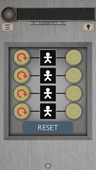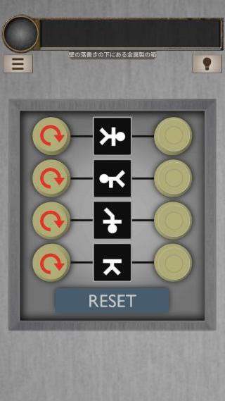 脱出ゲーム 不浄の人屋(脱出ゲーム LIST 牢獄シリーズ) 無料 4.2 評価する 送信する APP GEAR(Mina Imachi) 攻略その8 人型と向きに合わせる。 「赤色のボタン」を入手。 反対側に移動して、右上を拡大。 「赤色のボタン」を取り付ける。 ベッドの上の箱を拡大。 『赤赤白青白青赤赤』の順で押す。 中から「ロッカーのカギ」を入手。 左のロッカーを拡大。 攻略その1 攻略その2 攻略その3 攻略その4 攻略その5 攻略その6 攻略その7 攻略その8 攻略その9 攻略その10