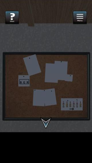 天井のランプの色『赤1、緑1』を確認して、左奥のコルクボードを拡大。
