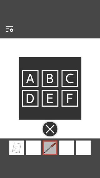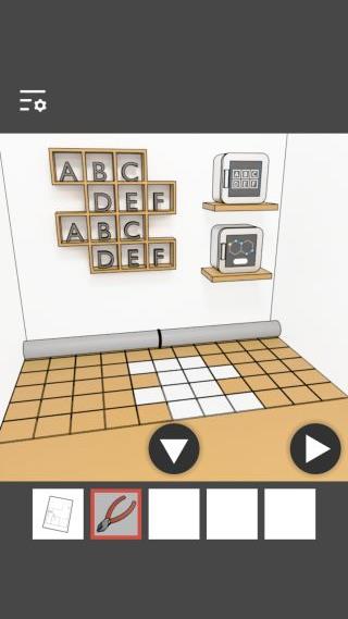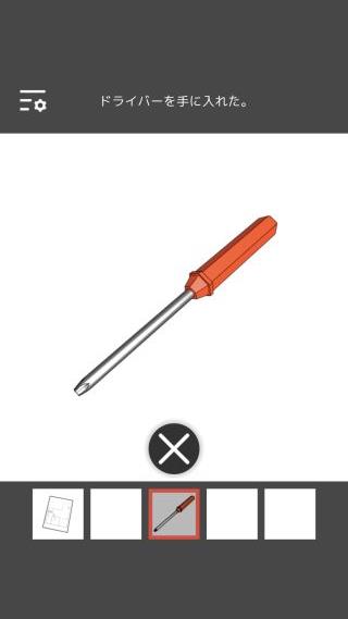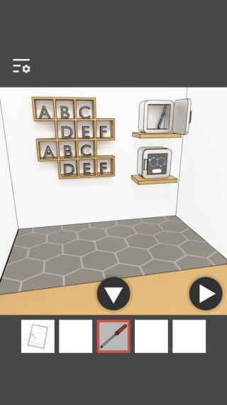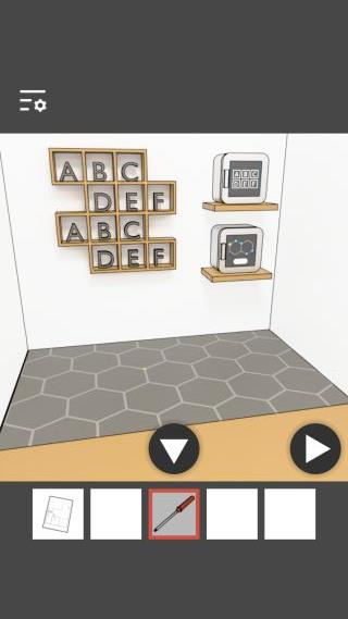 「ドライバー」を入手して、壁のアルファベットで矢印が指していた文字が『BFAE』なのを確認。