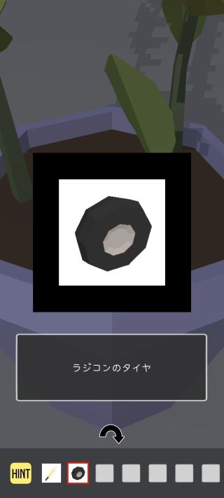 右の植木鉢を調べて、「ラジコンのタイヤ」を入手。