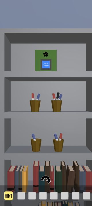 棚の右側を拡大して、ペン立てのペンの数を確認。