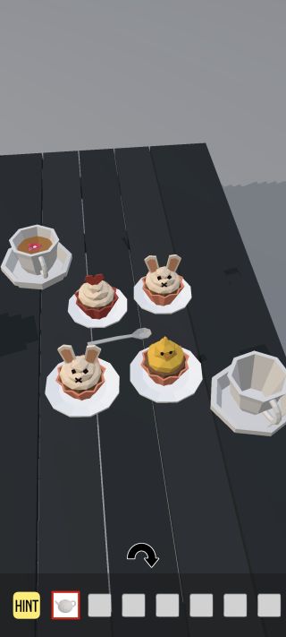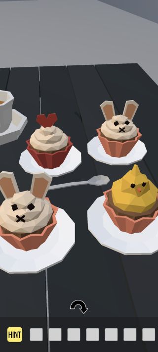 カップケーキを拡大して、『左上=ハート、右上=ウサギ、左下=ウサギ、右下=ヒヨコ』を確認。