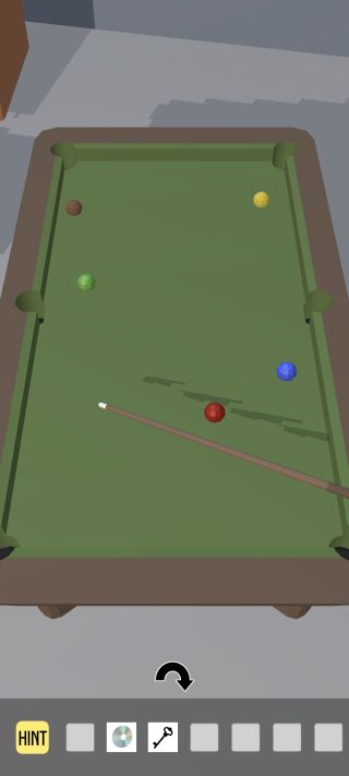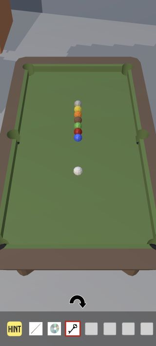 「ビリヤードキュー」を使って、残った玉の色を確認。