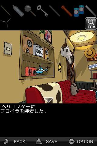 左の棚のヘリコプターに「プロペラ」を装着する。