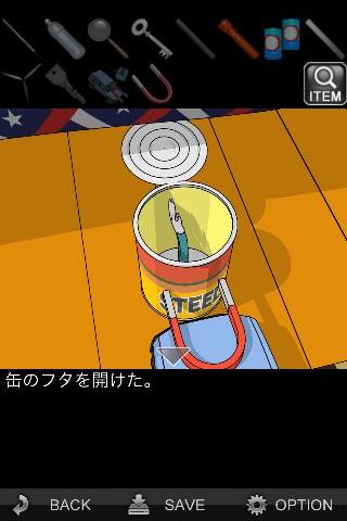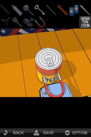 中の缶に「缶切り」を使って、「小さなハンドル」を入手。