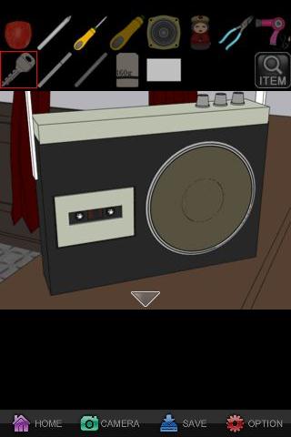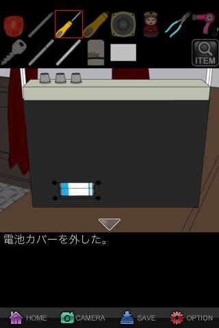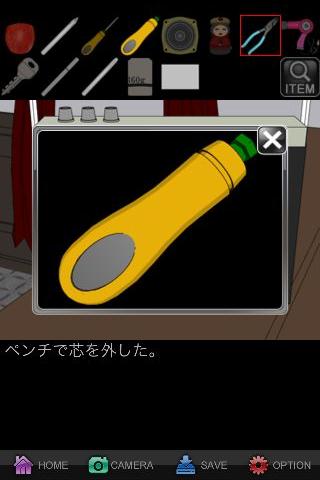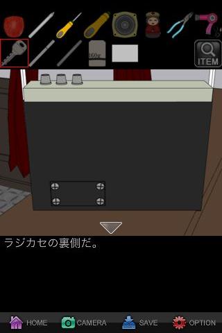 「鉄の棒」を差し込んで、ラジカセのネジを外す。