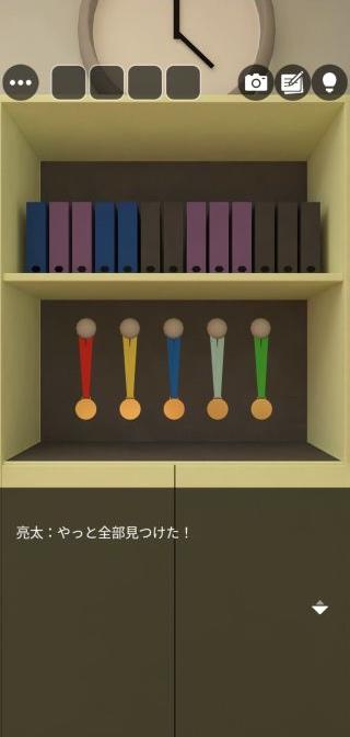 3つの「メダル」をセットして、モニターのフォルダの色『赤黄青灰緑』に入れ替えてクリア。