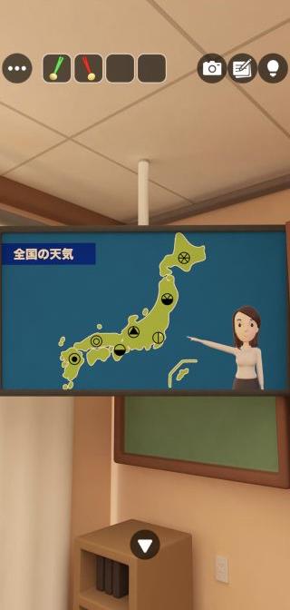 「リモコン」を使って、天気記号に日本地図の色を当てはめる。