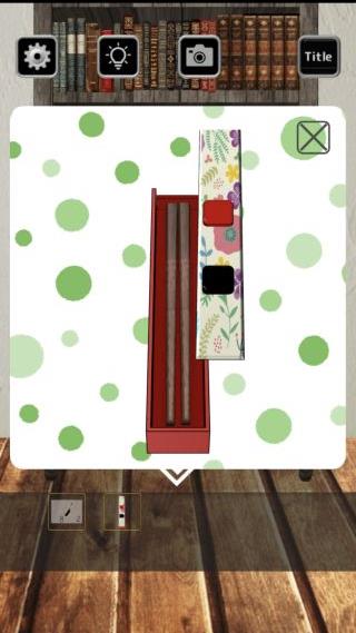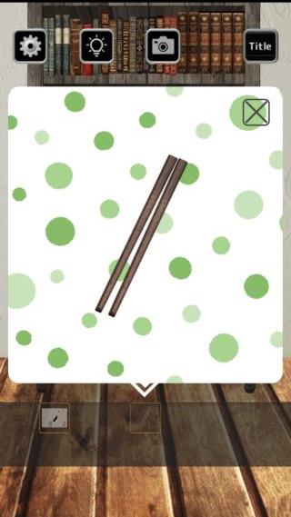 「箸」を使って、先ほどの棚の中の図形を枠に当てはめて『白赤白青黄』となるのを確認。
