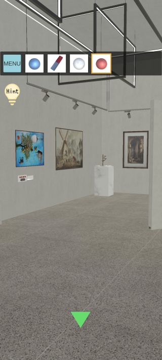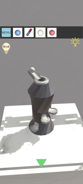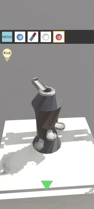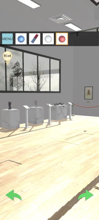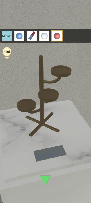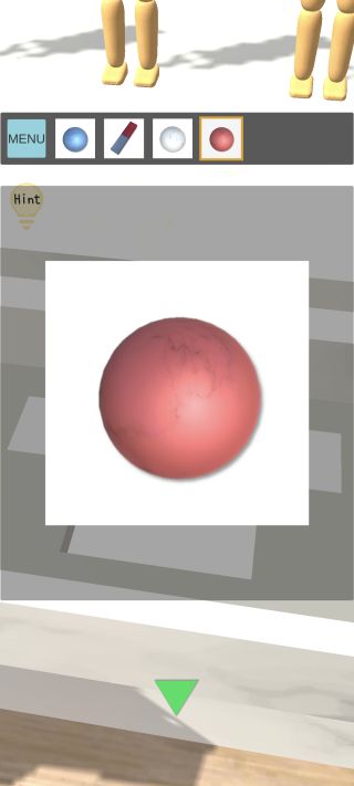 奥のオブジェを拡大して、3つの「玉」を『左下=青、中央=白、右上=赤』の位置に置く。