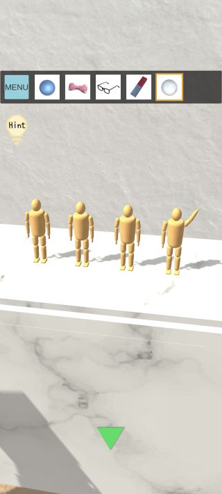 右奥の人形を拡大して、左から2番目に「メガネ」、一番右に「リボン」を取り付ける。