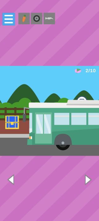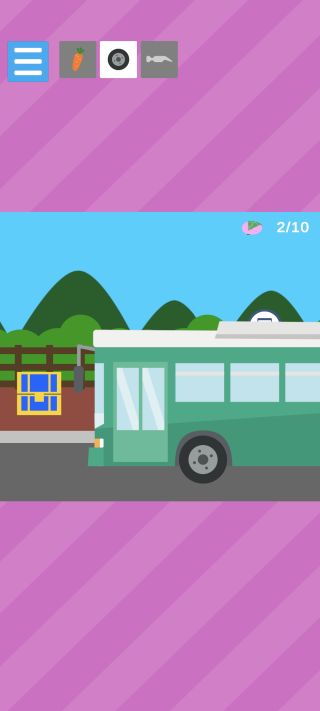 手前に戻って右に3回移動して、バスに「タイヤ」を取り付ける。