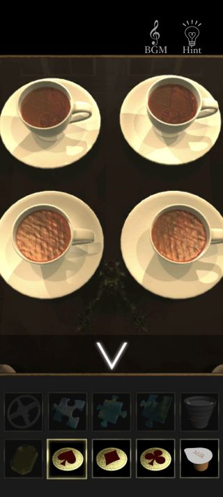「コイン」を入手して、テーブルの上のカップを拡大。