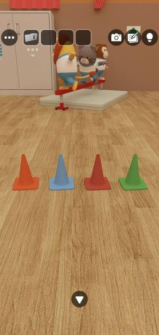 三角コーンを拡大して、『オレンジ、青、赤、緑』を確認。