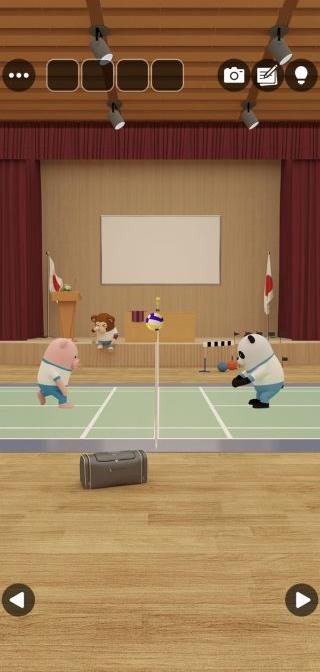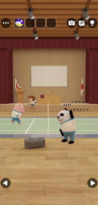 反対側に移動して、パンダに「バレーボール」を渡す。
