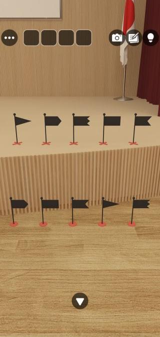 右奥の旗を拡大して、『◯✕✕◯◯』の順で形を確認。