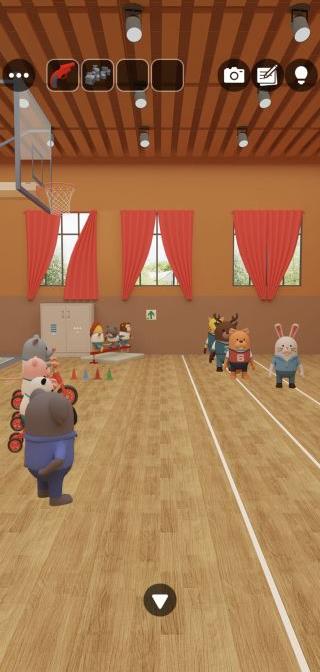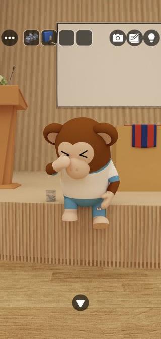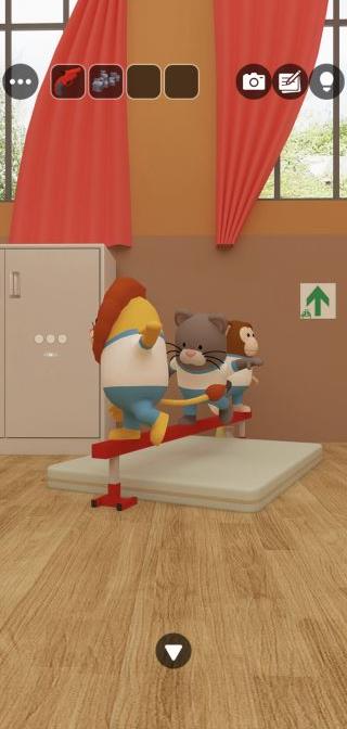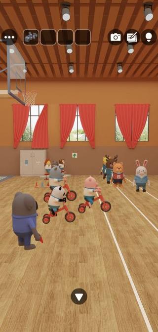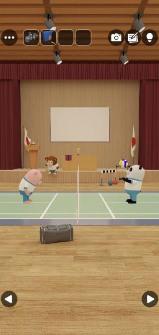 手前の動物に「スターターピストル」を渡して、3台の三輪車の配置のパターンを確認していく。