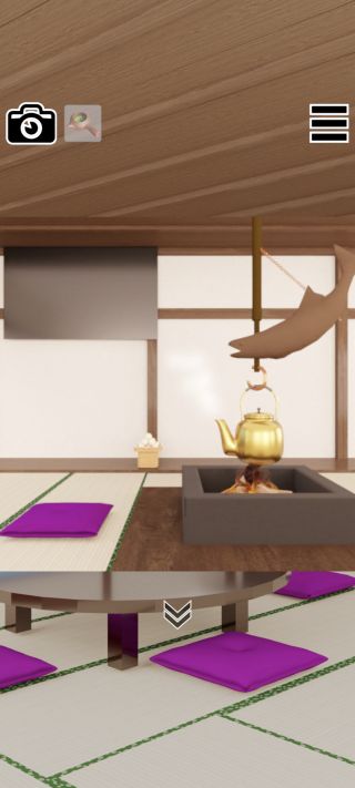 囲炉裏を拡大して、「茶葉の入った急須」を使う。