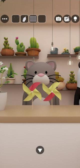 左の動物を拡大して、「折り紙」と「棒」を渡す。