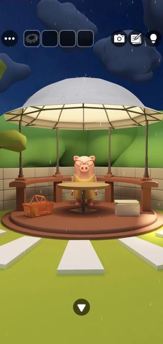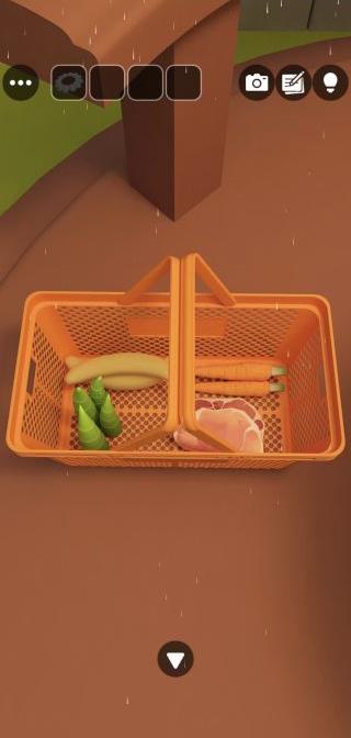 左のカゴを拡大して、『左上=バナナ、右上=ニンジン、左下=タケノコ、右下=肉』を確認。