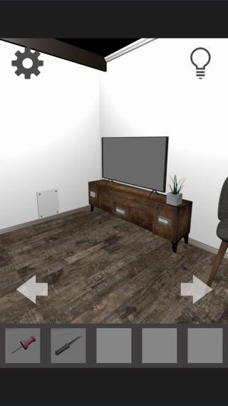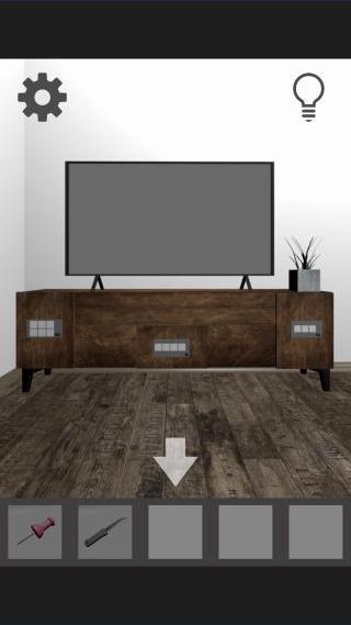 テレビ台の左の装置を拡大して、3つの植木鉢の葉の形と鉢の色と形に合わせる。