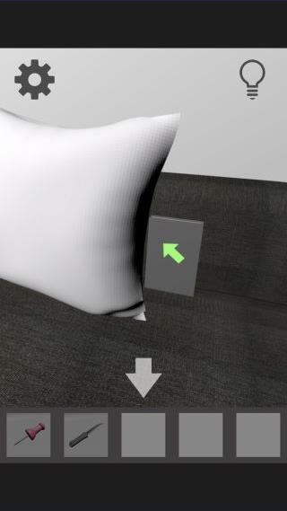 ソファのクッションを拡大して、『緑矢印=左上』を確認。