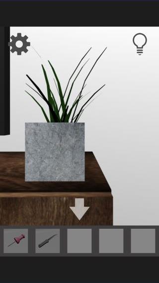 テーブルの上を拡大して、白い植木鉢の形を確認。