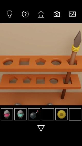 「マッチ」で火をつけて、左の槍の棚の穴の形を確認。