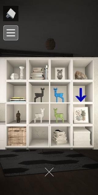 先ほどのメモをヒントに、鹿の置物から時計回りに先ほどの青い■の位置を確認。