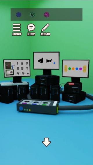3色の「玉」をセットして、右のモニターを拡大。