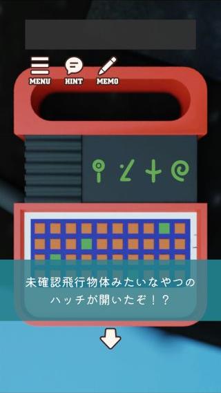 2ヶ所で確認した図形の配置で、上の図形を当てはめて『右上、中下、左中、左中、右中、中央、左上、右下』の順で押す。