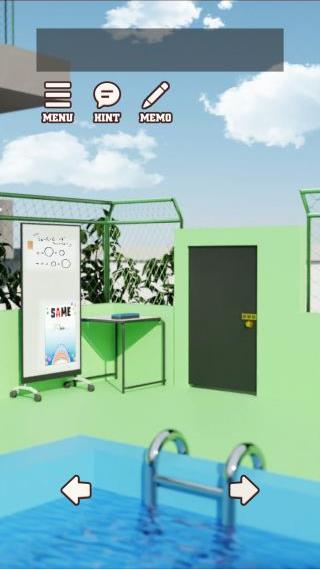 プールに戻って反対側に移動して、扉を拡大。