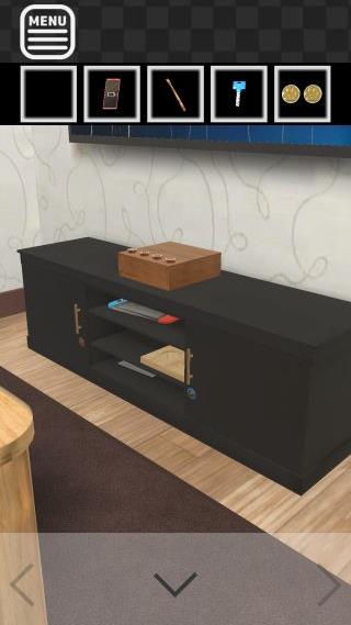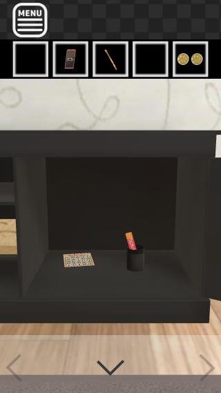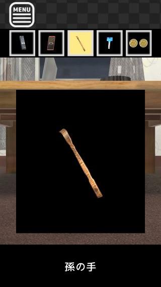 テーブルの下を調べて、「孫の手」を入手。