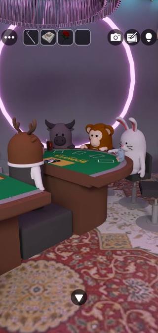 「白い玉」を入手して、隣の動物とトランプの『♣9』を確認。