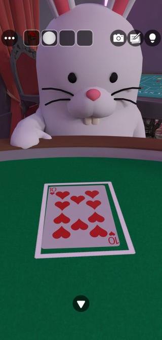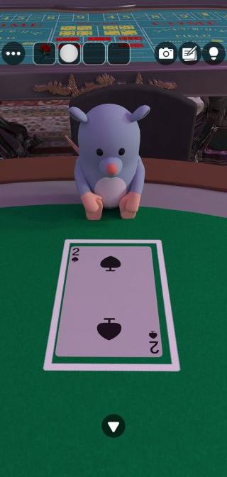 右の動物のトランプ『♥10、♠2』を確認。