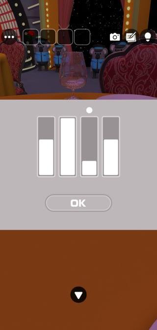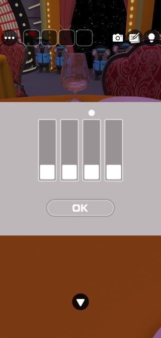 ●の位置でルーレットの色に対応したコインの高さに合わせる。